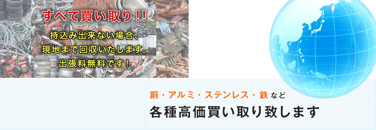 鉄買取・非鉄金属買取・アルミ買取・モーター買取・ステンレス買取・銅買取・電線くず買取・ラジエター 買取・トランス買取